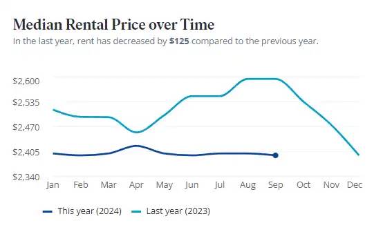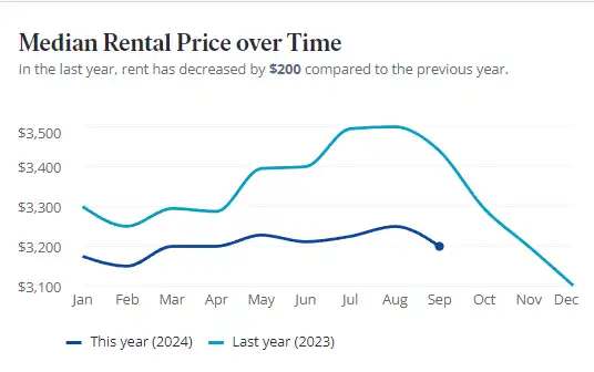 Meanwhile, the cost of renting a two-bedroom has also dropped in the last year. The median rental price as of September was $3,200 on Zillow compared to $3,440 the same month last year. Rental prices are still considered more expensive than the rest of the country.
